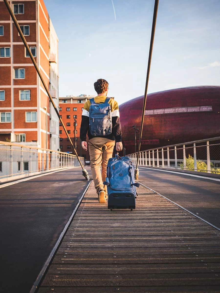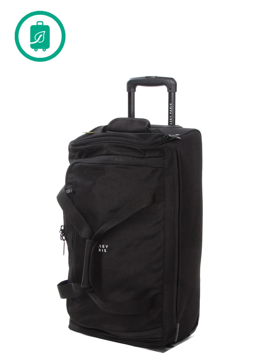 Les deux roues et le trolley double tube du sac de voyage Delsey Maubert 2.0 permettent un roulage fluide. Il peut également être porté à la main par ses deux poignées munies d’une patte rembourrée pour un confort optimal. Pour ne pas salir sa toile, il dispose de patins anti-éraflures. Le fond est muni de pieds escamotables pour influer sur la rigidité. Les décrocher permet ainsi de gagner de la place à la maison lorsqu’il n’est pas en usage.
