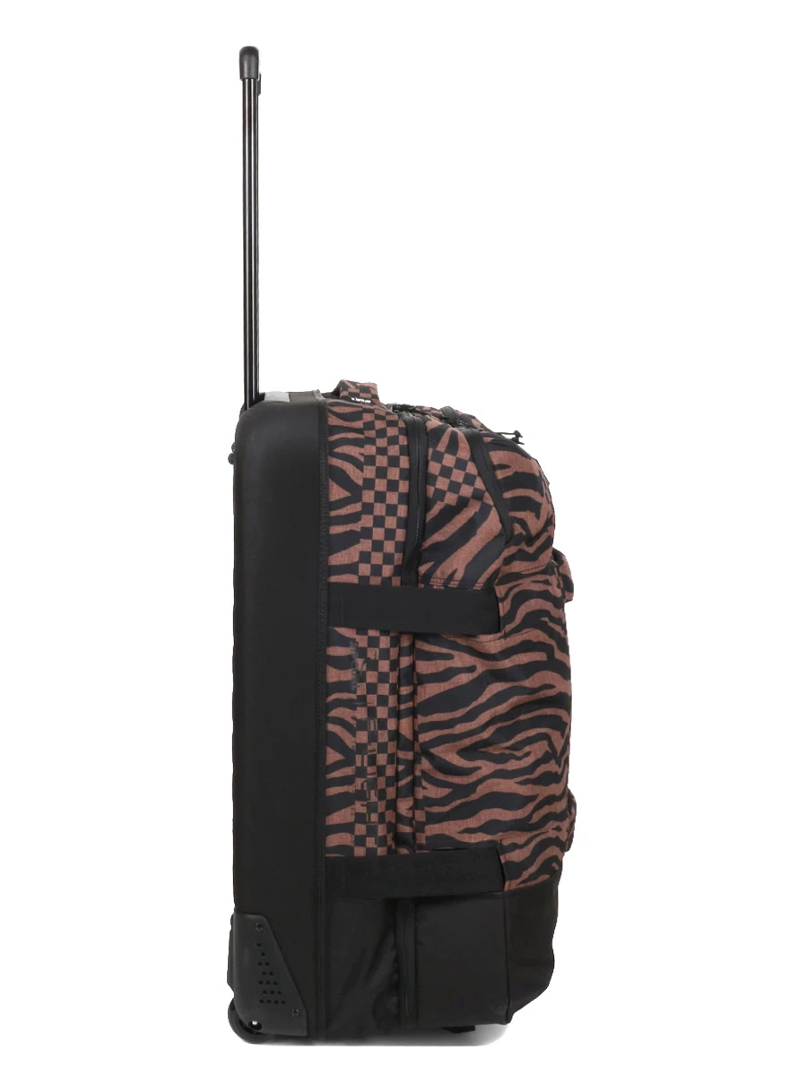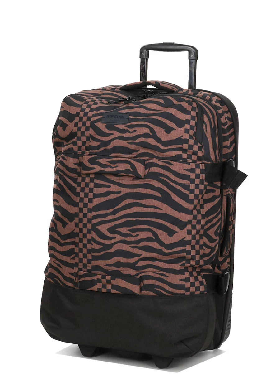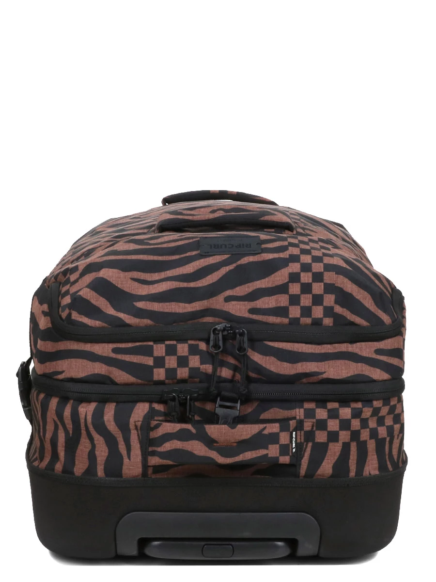Le sac à roulettes Rip Curl Sun Tribe F-Light Global est pourvu de deux compartiments pour organiser soigneusement les tenues et accessoires pour trois semaines d’escapade. Des parois zippées en maille filet les séparent pour éviter les débordements lors de l’ouverture. Sa poche frontale peut accueillir roman en cours de lecture, titres de transport, etc.. Un système d’attache sur sa partie supérieure permet d’y accrocher un sac d’appoint.