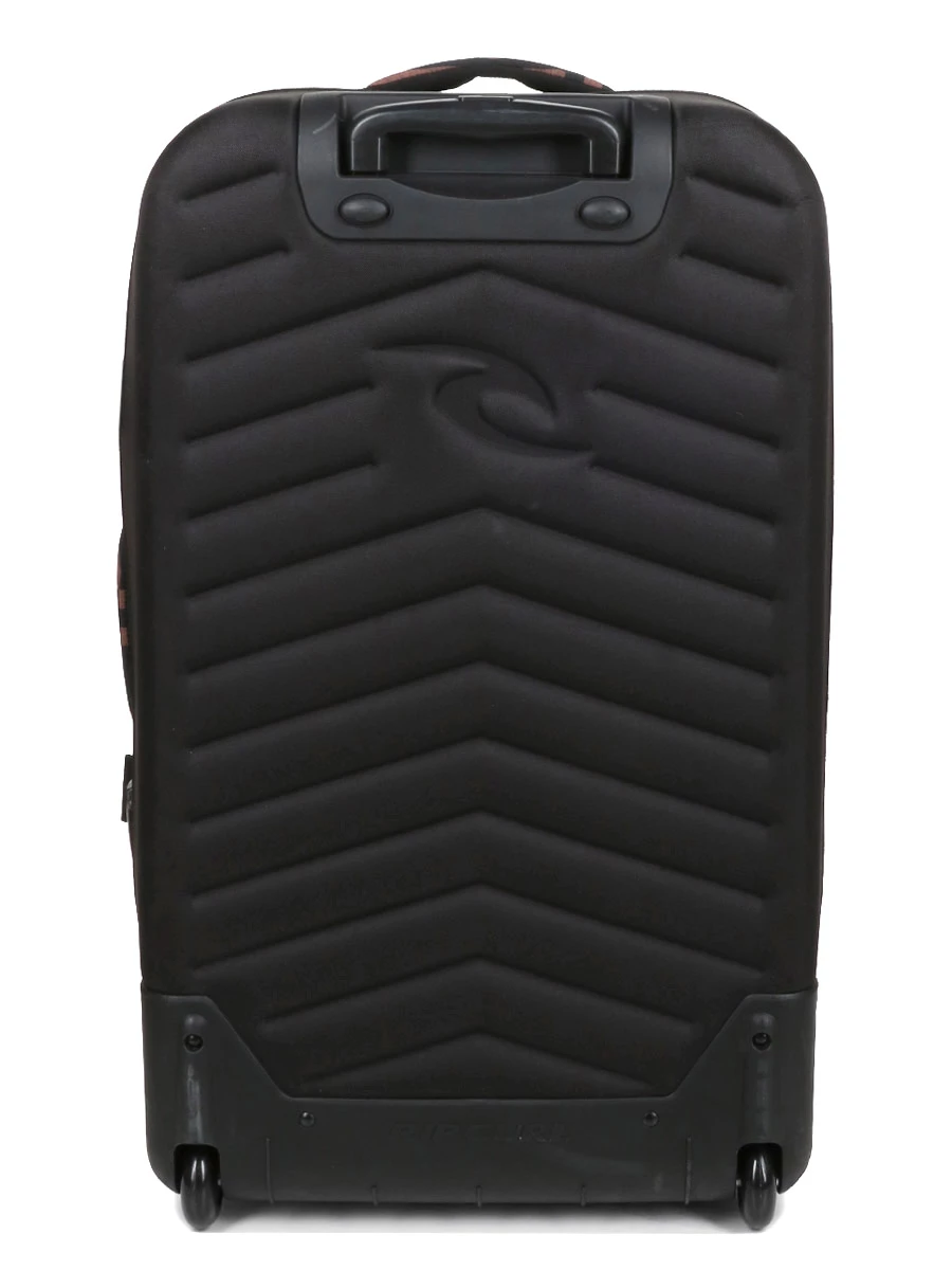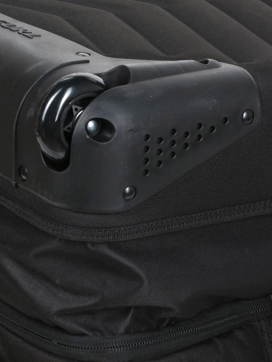 Le sac Rip Curl Sun Tribe F-Light Global se transporte aisément en le tractant comme en le portant à la main grâce à ses deux roues, son trolley double canne et ses quatre poignées de portage. Pour plus de stabilité, il comporte des patins de protection et des sangles de compression pour moduler sa forme. Les languettes des zips sont perforées pour pouvoir les sécuriser avec un cadenas (non fourni).